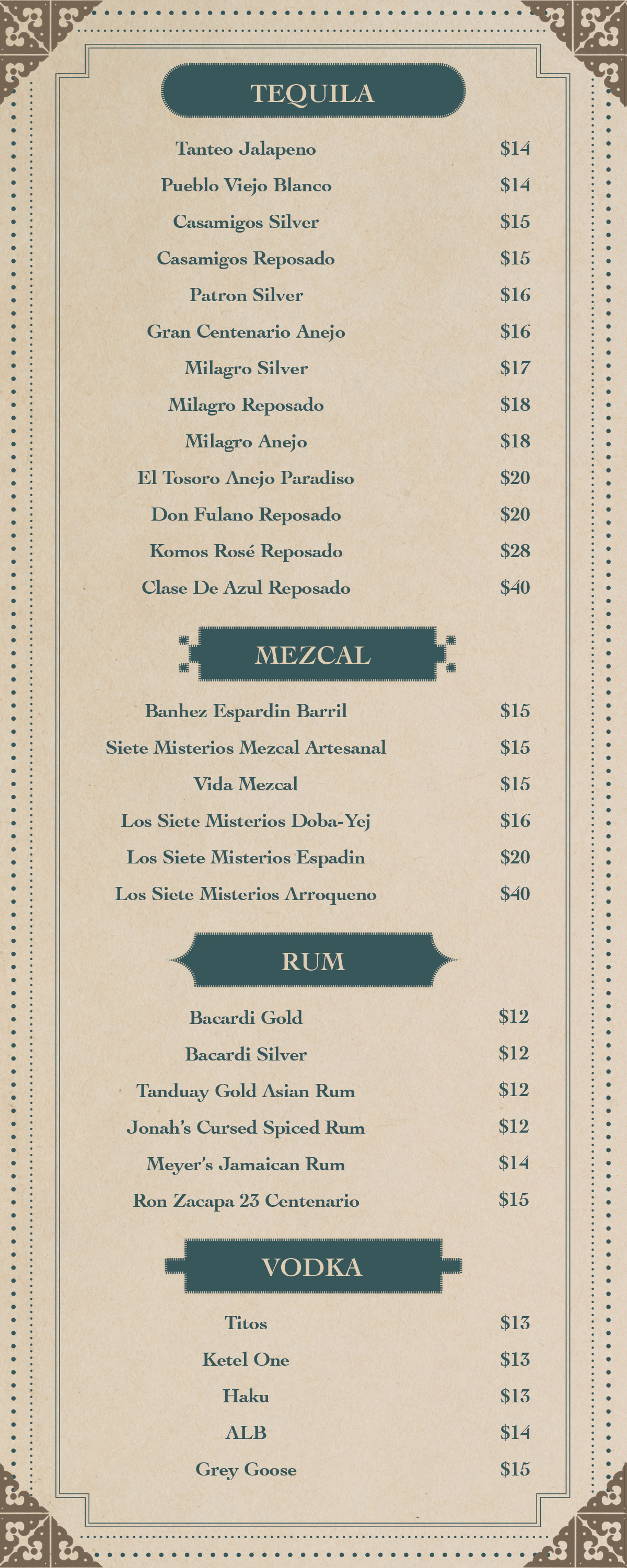 Drinks & food menu for Midtown Chinese restaurant & bar. 2023.